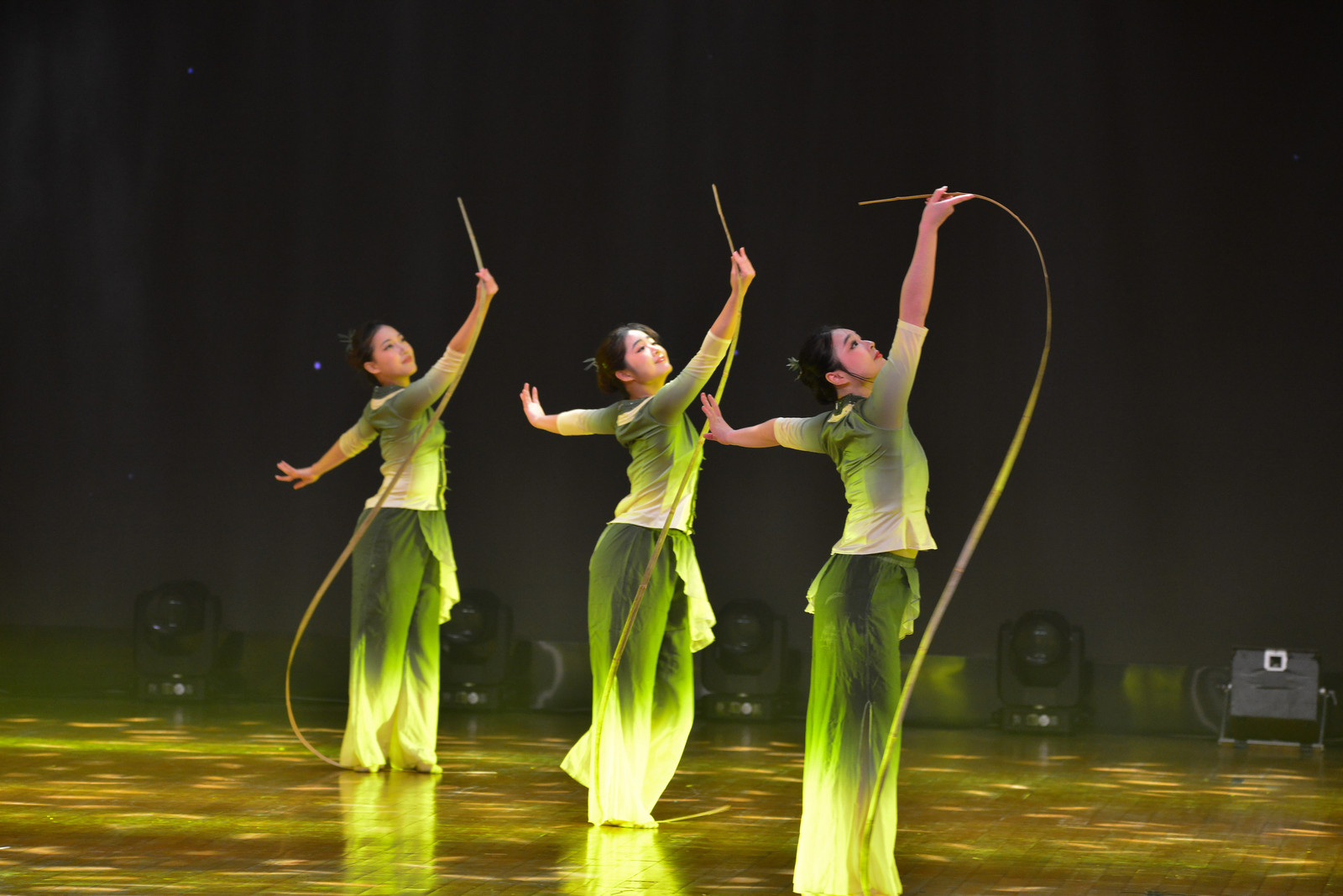 展演中,多元艺术形式碰撞出璀璨火花:音乐剧片段《Defying Gravity》嗓音空灵又不失激昂,穿透力十足;现代舞剧《影子牧歌》以激光光束勾勒出由一个个影子串联的人生轨迹,意境悠远;杂技《倒立射箭》中,表演者双手撑杆空中倒立,仅凭双脚搭弓射箭却直中靶心,惊险刺激的画面引得全场屏息;古典舞《两仪·生》以肢体演绎“一生二、二生三、三生万物”的东方禅意,韵味悠长;蒙族舞《仰望苍穹》再现了辽阔草原上,牧民们从清晨到日暮、世世代代守望家园的深沉情怀;少儿舞蹈《一颗豆·一滴酱》则以童真视角,串联起种子到果实、再到客家传统酱料的醇厚历史,满是童趣与闪光……尤为动人的是宝安区原创歌曲《城市里的光》,深情旋律缓缓流淌,既以歌词中蕴含的城市温度与湾区情怀直抵人心、予人力量,更唱出了宝安从“深圳根”到“湾区门”的华丽蝶变。整场演出以艺术为桥,生动诠释了粤港澳三地同根同源的文化基因与情感共鸣,让湾区文化向心力在光影与旋律中愈发浓烈。