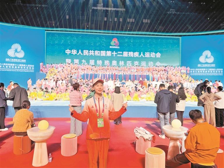 ▲兰然作为2025年全国残特奥会火炬手参加闭幕活动。
