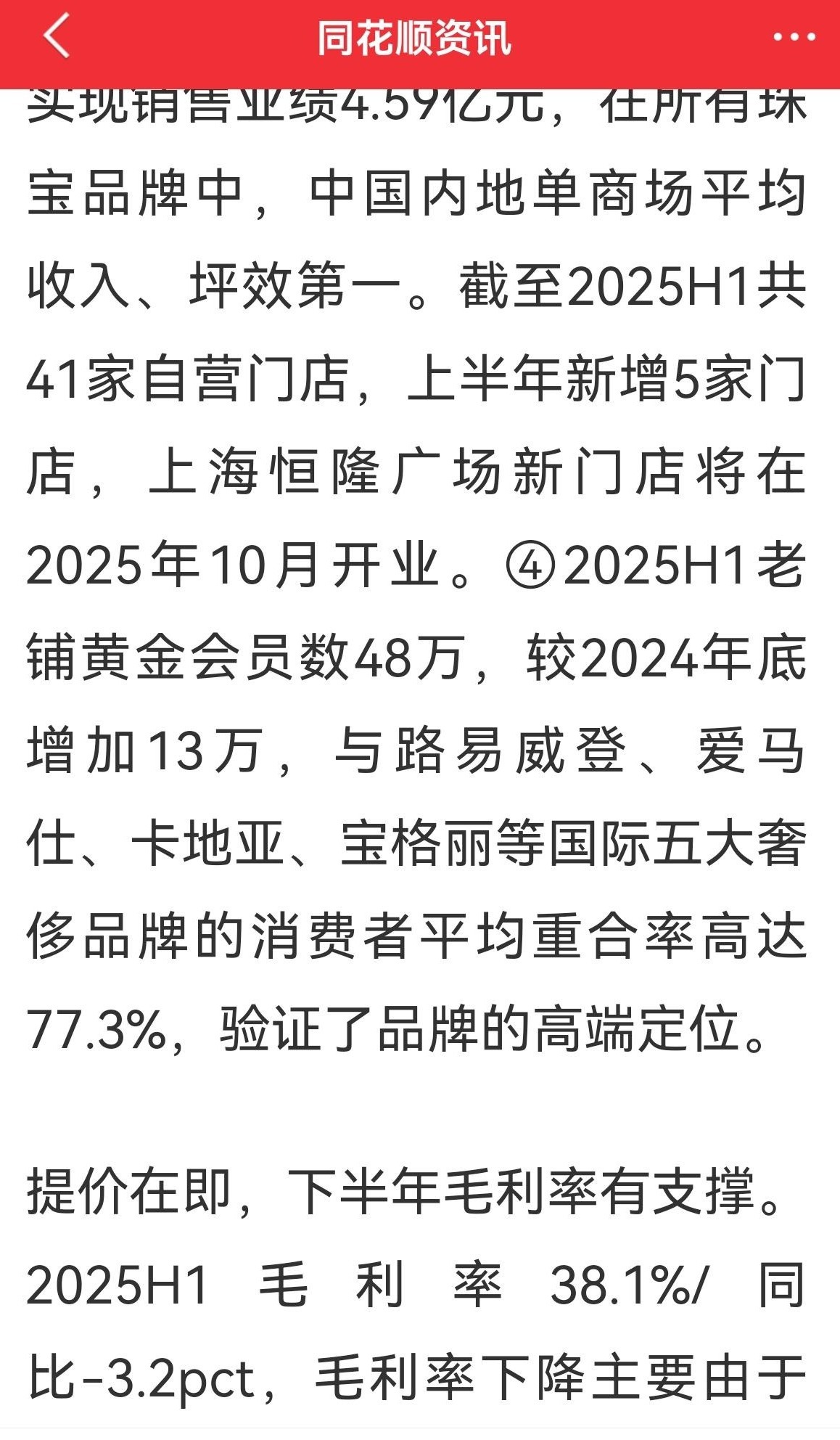 值得关注的是,面对线下客流下滑情况,品牌策略已出现分化。部分高端品牌尝试凭借“文化+定位溢价”突围。老铺黄金半年报显示其与国际五大奢侈品牌消费者重合率已达77.3%。虽线下并无更多优惠,品牌仍凭借其“古法、手工、定制”的IP,吸引意欲彰显身份的高净值客群,而保持线下销售热度。而京工美作线下门店主打非遗工艺,客群以收藏者为主。