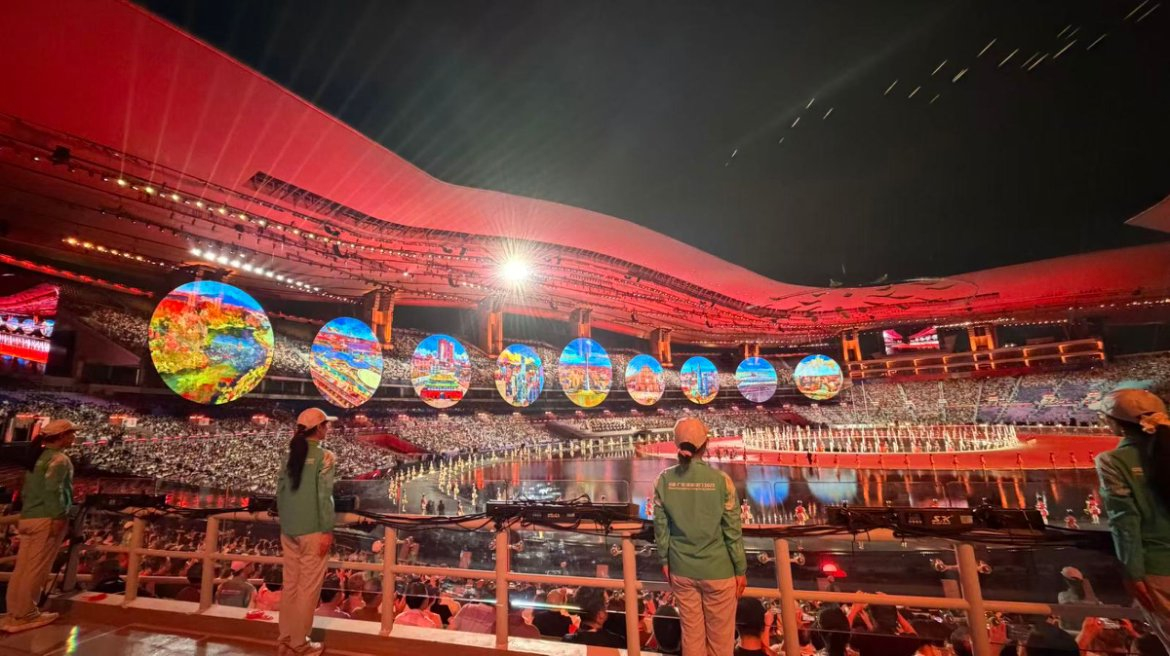 在11月9日举行的十五运会开幕式上,深元人工智能依托MasterAgent,采用“一键生成多智能体集群”的创新模式,生成了一幅174米长的AI数字画卷,并以9块圆形屏幕在开幕式现场联动呈现,生动描绘出广州塔“小蛮腰”、港珠澳大桥、澳门大三巴牌坊等粤港澳大湾区标志性景观,成为开幕式上极具视觉震撼力的亮点之一,实现了AI集体智慧在大型艺术舞台的首次亮相。