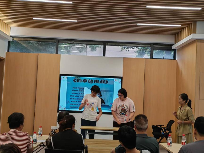 活动伊始,带教老师以“拍拿放”热身游戏拉开序幕,通过分组PK的形式组织参与者比拼动作完成的速度与准确度。现场气氛活跃,笑声不断,有效增进了参与者之间的互动与交流。特别在“胜负互助”环节中,输的小组为赢的小组进行肩膀按摩,更让参与者在轻松协作中深刻感受到团队合作的乐趣。