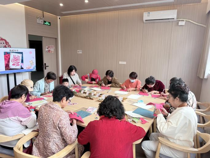 活动现场,在工作人员的指导下,居民用巧手剪出朵朵象征高洁品格的菊花剪纸。
