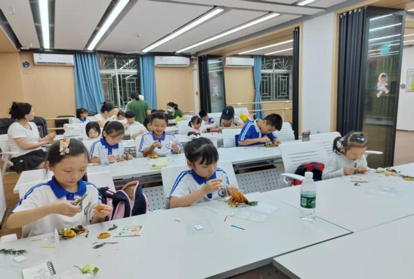 现场氛围温馨热烈,大人与小朋友默契配合,指尖翻飞间,原本普通的彩色扭扭棒逐渐变成形态各异的荷花与荷叶。