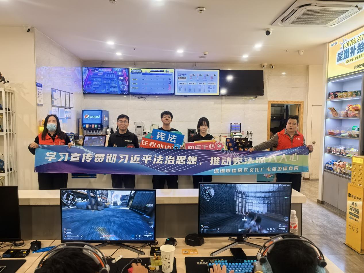 福田区文化广电旅游体育局还组织普法志愿者走进部分KTV、网吧、酒店等文体旅游场所,向企业经营者和从业人员发放《中华人民共和国宪法》《中华人民共和国安全生产法》等法律读本,并结合行业特点进行相关法律法规的宣讲普及,旨在提升行业依法经营意识和从业人员法律素养。