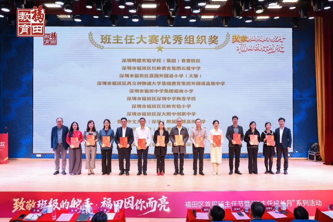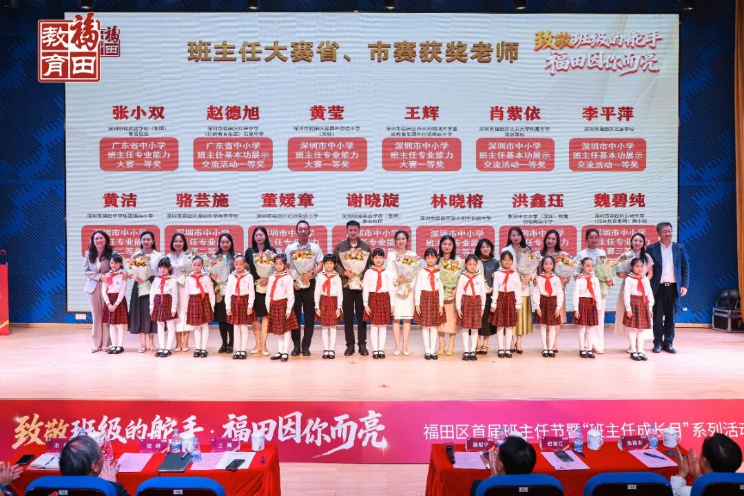 长期以来福田区积极为班主任专业发展 搭建多元化平台,打造示范品牌,深化“大先生”培养计划,举办“名班主任大讲堂”“星训营”等特色活动;设立七大德育片区,以片区发展带动班主任队伍发展; 注重多元融通,推进“培赛研”一体化建设,在多个重大赛事上,福田班主任连连斩获大奖、展现卓越风采。