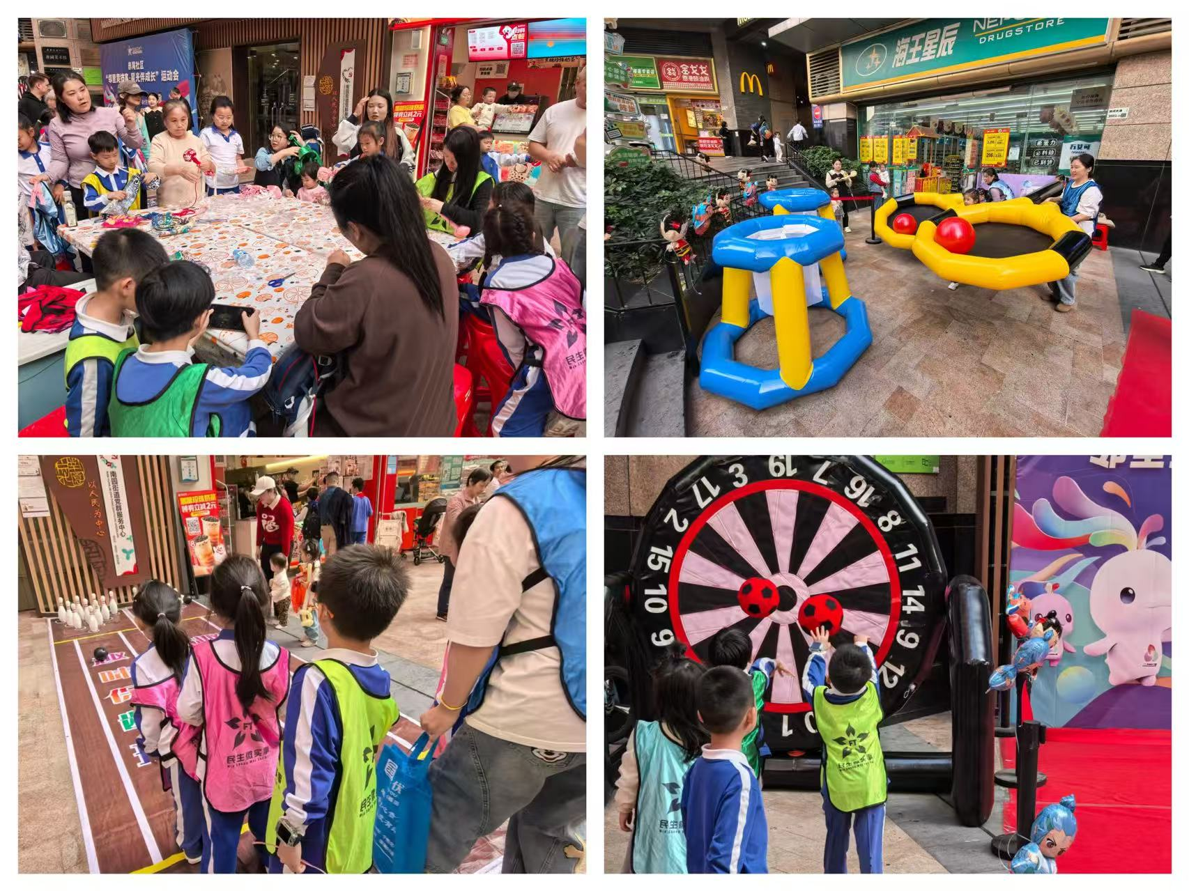 活动现场,六大趣味项目轮番上演,点燃了居民们的参与热情。旱地龙舟项目中,两支队伍跨上龙舟,双手紧握把手,“一二、一二”的口号整齐划一,队员们躬身蹬腿、同步跳跃,龙舟在地上起伏前进,仿佛真在水中破浪。足定乾坤环节,五米开外,选手们屏息凝神,退休教师陈阿姨手腕轻抖,粘球“啪”一声正中靶心,“好球!”人群中爆发出喝彩。十拿九稳项目考验协作能力,每人手持一个大型运球容器,各自将彩球稳稳置于其中。