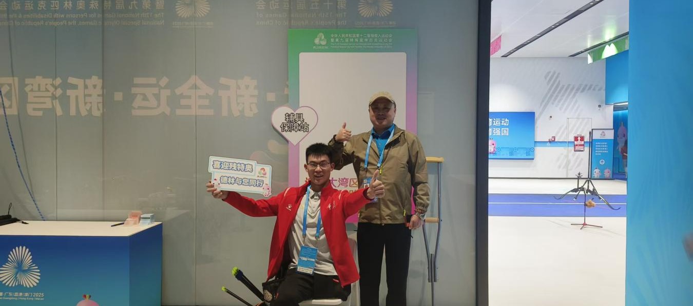 射箭赛事进行时,重庆队两名运动员的拐杖握把破损严重,保障团队及时为其进行了更换。此后,这两名运动员一路过关斩将,最终摘得金牌。赛后,他们特意与保障团队合影留念。这温馨的一幕,正是残特奥会福田赛区康复辅具器具保障工作的生动写照——那些看似琐碎的操作,如紧固螺丝、更换握把、给轮胎打气等,实则成为运动员在赛场上追逐梦想的“隐形翅膀”。