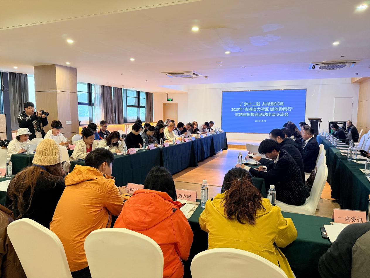 10月24日,广黔十二载·共绘振兴篇——2025年“粤港澳大湾区媒体黔南行”主题宣传报道活动走进黔南,座谈交流会议在黔南都匀举行。