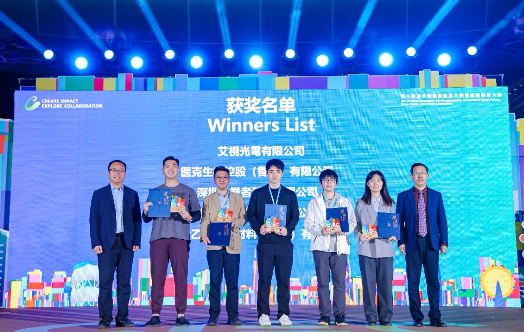 经过激烈角逐,深圳市生境科技有限公司(人工智能与具身智能赛道)、医克生物控股(香港)有限公司(生命健康赛道)、大乙半导体材料(深圳)有限公司(新材料新能源与节能环保赛道)、深圳风脊者科技有限公司(文化创意与体育科技赛道)、艾视光电有限公司(金融科技及其他赛道)等五大赛道金奖脱颖而出,助力引领产业革新方向。
