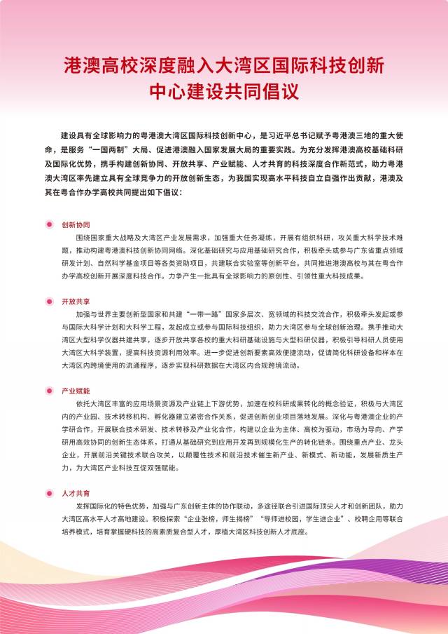 香港大学、香港中文大学、香港科技大学、香港理工大学、香港城市大学、香港浸会大学、香港中文大学(深圳)、香港科技大学(广州)、香港城市大学(东莞)、北师香港浸会大学、澳门大学、澳门科技大学共同提出倡议。
