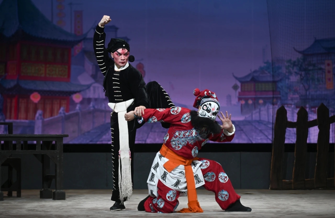 广东粤剧院带来的三出经典折子戏精彩纷呈,各具匠心:《醉打蒋门神》中,苏国进饰演的武松虎步生风,与麦少聪饰演的蒋门神展开酣畅淋漓的正邪对决,一招一式如行云流水,对打拳拳到肉,尽显豪情;《摘樱桃》里,李钰淇与吴思桦分别饰演丫鬟云儿与小姐,李钰淇以精巧的身段模拟摘樱桃之趣,如虚拟的采摘、端详等动作,既写意又传神;《虹桥赠珠》中,龚洁影饰凌波仙子、冼鉴棠饰白泳,二人演绎仙凡相恋的浪漫神话,勇抗天兵的武打场面干净利落,刚柔并济间令人目不暇接。