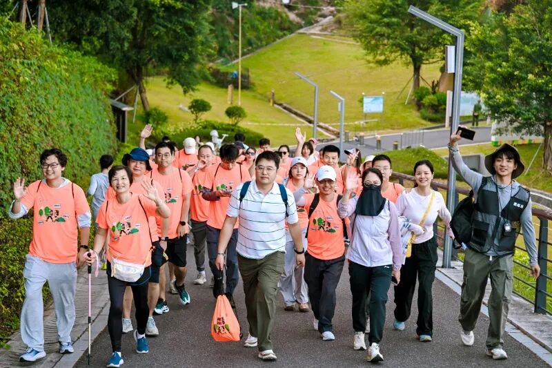 参与者在“旋转迷宫”“大力锤”等趣味破冰游戏中拉近距离,随后在专业教练的带领下进行热身准备。九时许,十支徒步小队迎着朝阳依次出发,沿着风景秀丽的郊野径一路前行。途中设置的“破译密码”“一柱擎天”等团队挑战,既考验智慧又促进协作,让大家在默契配合中结下深厚友谊。