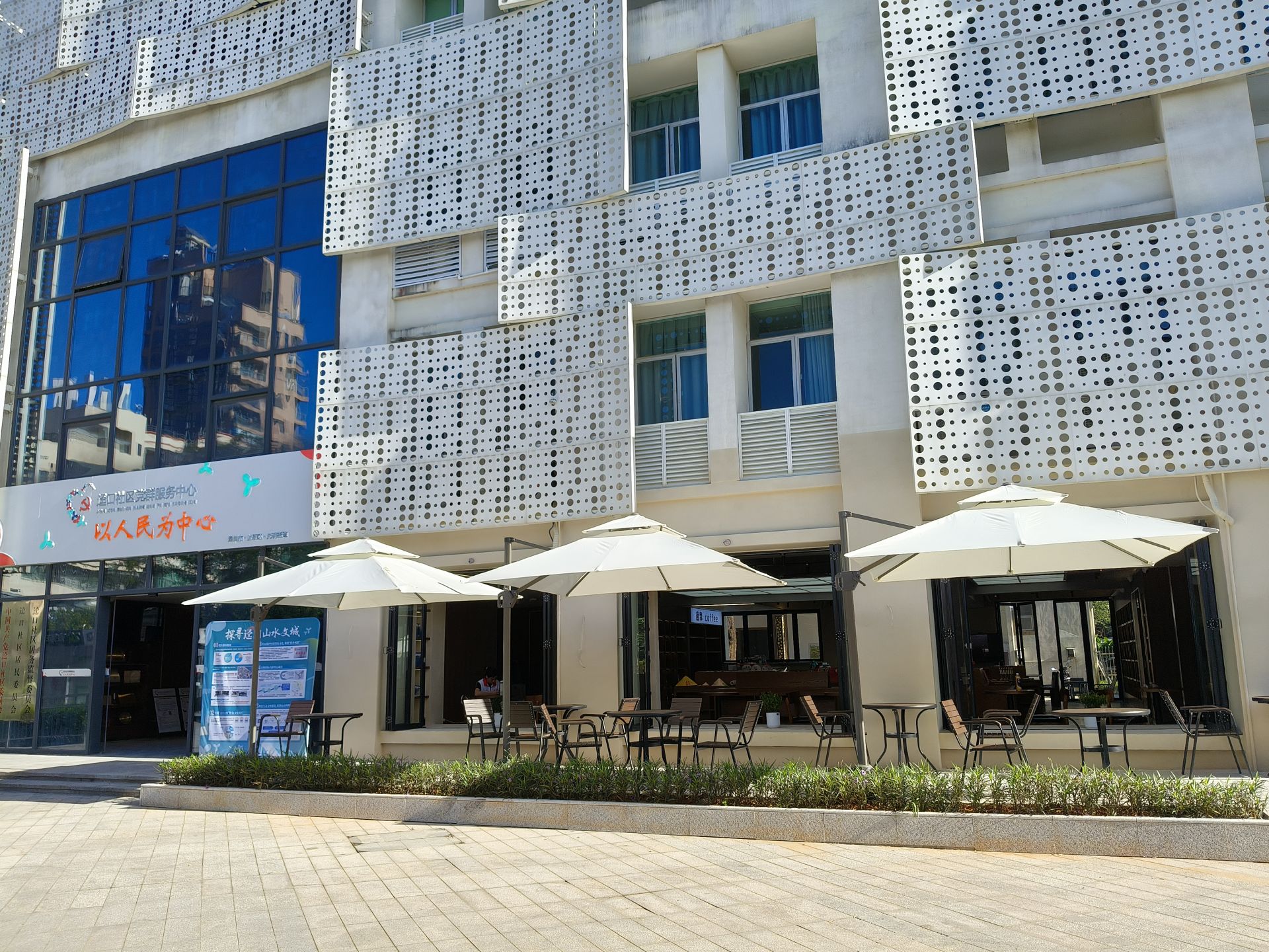 改造后的党群服务中心突破传统办事大厅单一功能,融合了青年创享驿站、居民议事厅、邻里手工坊等功能区域,引入咖啡、迳口供销社、圈圈单车骑行驿站等便民业态,构建居民“家门口”的一站式服务网络,实现从“行政办公空间”到“宜居生活空间”的转型,让居民在“15分钟社区生活圈”内即可享受便捷生活服务。
