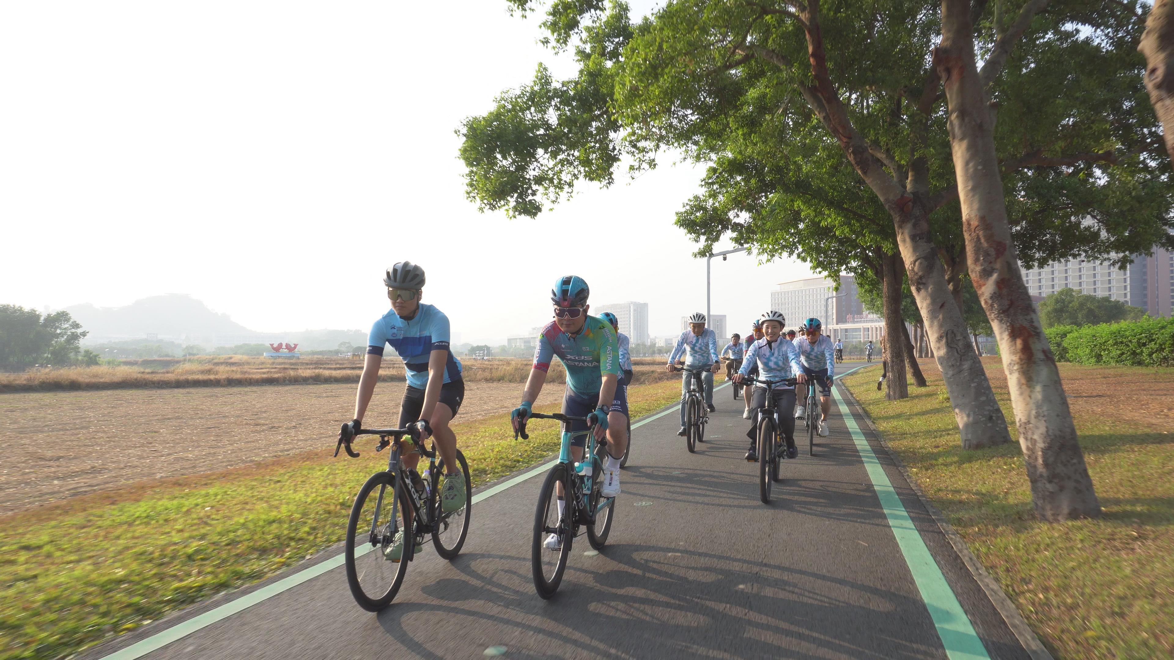 随着启动喇叭清脆鸣响的瞬间,开启5.5公里的骑行之旅。专业保障团队全程护航,补给点随时待命,嘉宾们暂别试管与图纸,在平缓的路面上放松身心,让车轮碾过疲惫,让清风拂去忙碌。骑行中,既有同行间的轻松闲谈,也有科研思路的偶然碰撞,自然的静谧与科学的灵光在此交融。