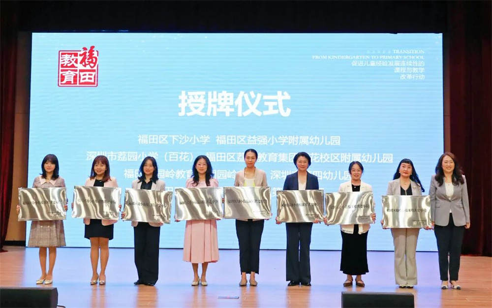 近日,福田区教育局举办“让衔接更有力量”系列联合教研活动,以“大协同・大融合:共建幼小科学衔接新生态”为主题,通过主旨报告、经验分享与专家指导等多种形式,集中展示了福田区在推进幼小科学衔接方面的系统探索与阶段成果,并为首批22所幼小衔接课程共建单位授牌。区属小学校长、幼儿园园长,教育局相关负责人及结对园校代表等280人参加活动,广州大学教授叶平枝受邀现场指导。