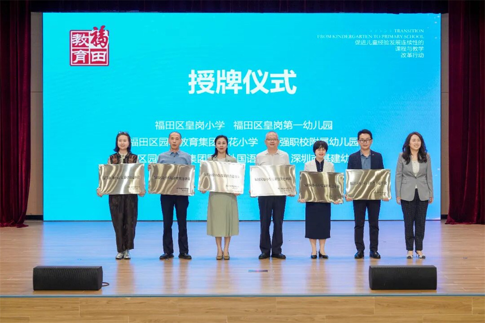 经验分享环节,福强小学、深圳市第八幼儿园、深圳市第五幼儿园的代表分别汇报实践路径。福强小学以“五色花课程”构建衔接体系,第八幼儿园通过游戏化教学与小学深度协同,第五幼儿园打造“泛在学习圈”助力幼儿平稳过渡,展示了福田区园校协同的多元实践模式。