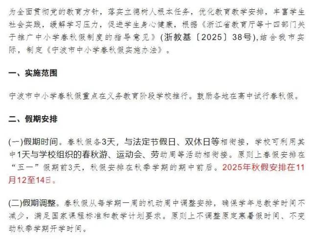 今年9月,商务部、国家发展改革委、教育部等9部门印发《关于扩大服务消费的若干政策措施》,其中明确提到,科学调整每学年的教学和放假时间,探索设置中小学春秋假,相应缩短寒暑假时间,增加旅游出行等服务消费时间。
