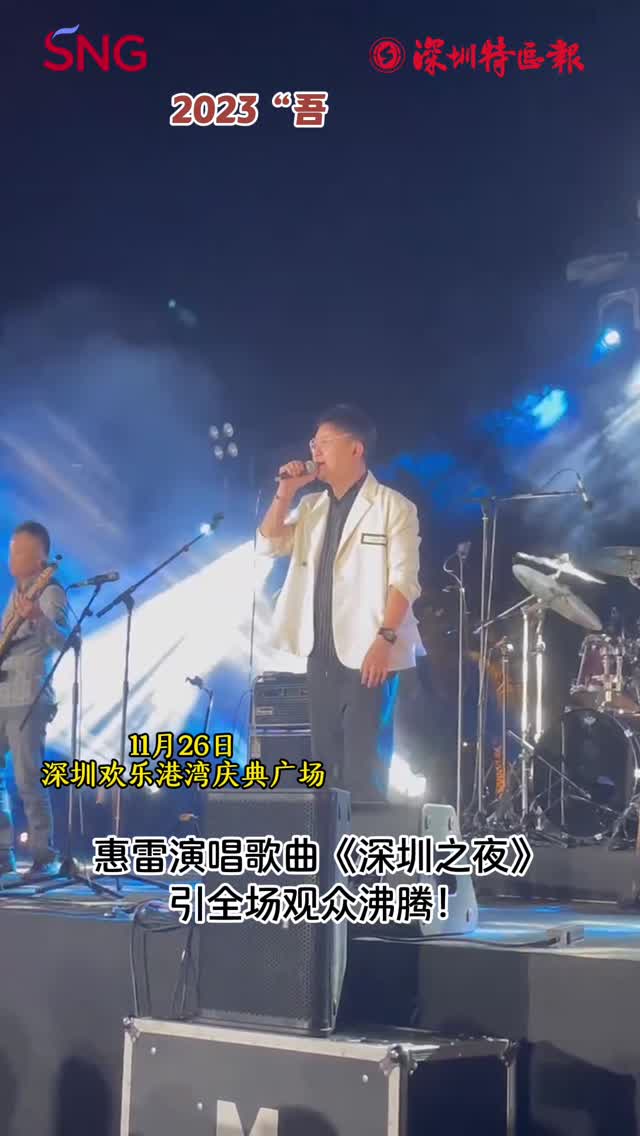 2023年11月26日晚“吾城吾歌”新时代中国城市民谣歌汇「城市韵律」专场,在深圳欢乐港湾庆典广场精彩上演。惠雷演唱歌曲《深圳之夜》,引全场观众沸腾!(编辑:尤艺樵)