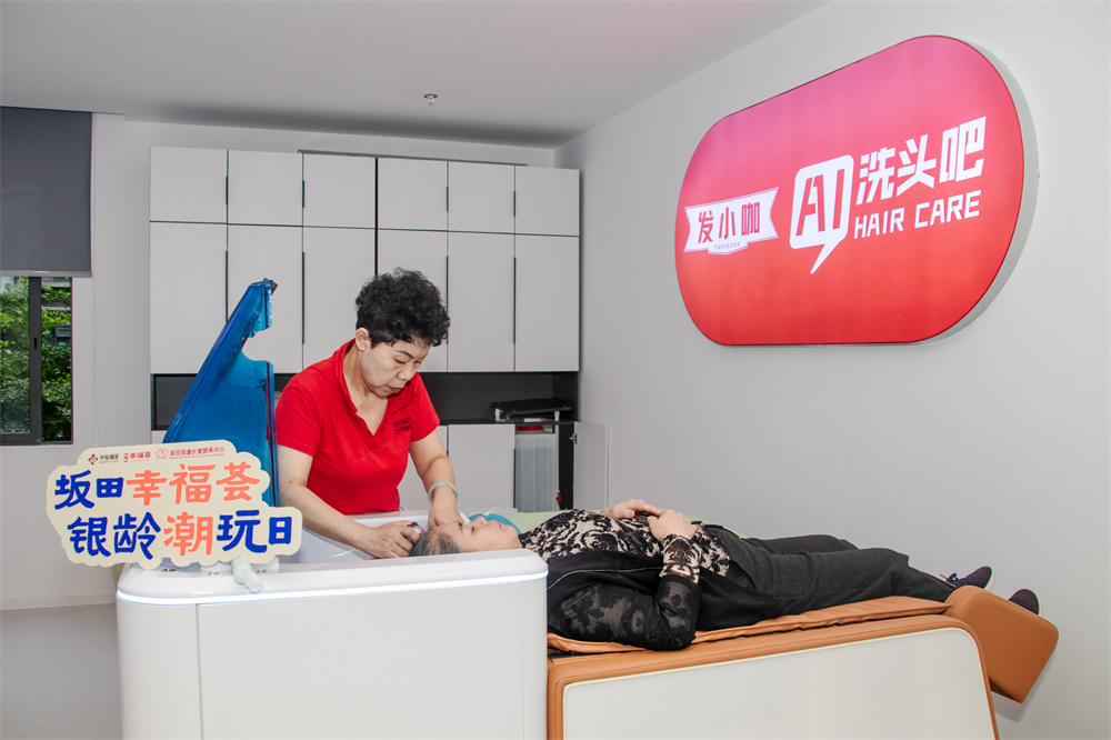坂田长者服务中心以“银龄潮玩日”为载体,推动服务从单一功能向集成化升级,形成“空间共融+体系支撑”的双轮驱动。中心以“全龄健康共同体”为理念,采用“政府+市场+社会”共建模式,推动代际融合与空间共享,整合资源,打造一站式养老枢纽。空间共融激发社区代际活力,儿童学习区与老年大学相邻,健康养生区配备适老康复设备,AI智能洗发养发配合智能康复机器人,贯彻“全龄健康共同体”理念。在“银龄潮玩日”期间,三代同堂——孩子做手工,妈妈做头发,爸爸做理疗,老人上绘画课,实现“一馆多用”。这种布局不仅促成了多对互动搭档,更传递出“养老不是隔离,而是融合”的可持续路径。