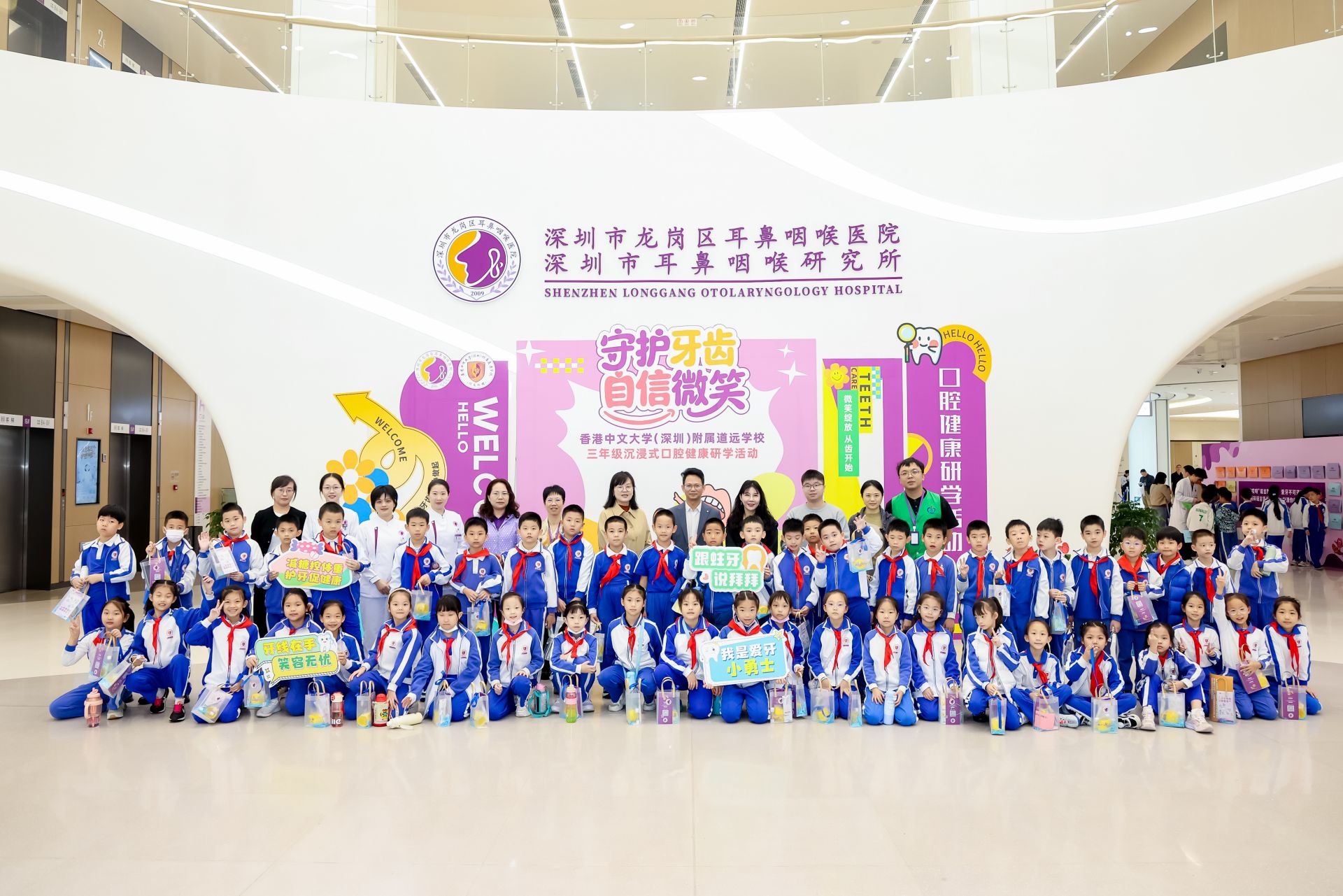 10月23日,龙岗区耳鼻咽喉医院与香港中文大学(深圳)附属道远学校联合举办“守护牙齿,自信微笑”三年级口腔健康研学活动,首批300名学生在沉浸式体验中开启了一段充满惊喜和收获的研学之旅。