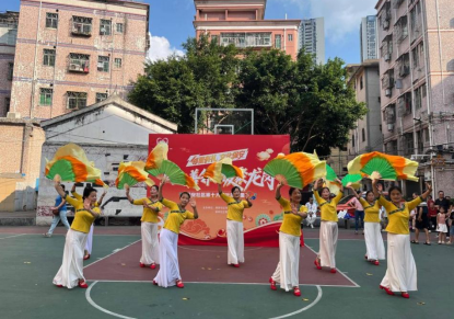 活动开始,随着一众穿着演出服饰的居民登场,观众们的热情瞬间被点燃。《茶香夜雨》优雅的舞姿展现了柔美婉约;“太极功夫秀”展现出社区长者老当益壮的精神面貌;当《绿色军衣》激昂登场,充满力量的舞姿让现场掌声如潮。“台上都是熟悉的邻居,感觉特别亲切!”带着孩子前来观看的彭女士笑着说出了许多观众的心声。