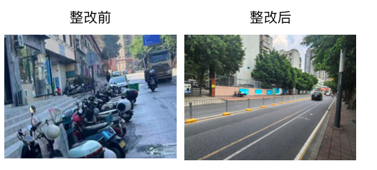 治理的第一步是筑牢安全底线。街道在道路中央安装了物理隔离护栏,从根本上杜绝了行人横穿和机动车随意掉头带来的风险,有效遏制了人车混行的乱象。护栏安装后,虽然安全状况立竿见影地改善,但也出现了局部路段潮汐性拥堵的新问题。