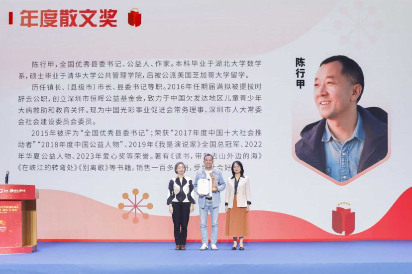 在备受关注的主奖项中,著名翻译家胡小跃凭借深厚的文学翻译功底与国际影响力摘得“年度致敬奖”,他曾获法国“文艺骑士”“文艺军官”勋章及傅雷翻译奖,其译作多次成为中外文学交流的重要载体;鲁迅文学奖获得者王十月以小说《不舍昼夜》斩获“年度小说奖”,作品细腻描摹时代变迁中的人性微光;当代女性文学代表作家林白凭借诗歌集《身体的雷霆》拿下“年度诗歌奖”,用灵动文字展现女性视角下的生命感悟;知名公益人、作家陈行甲则以《别离歌》获“年度散文奖”,他在现场分享道:“红棉文学奖立足深圳、走向全国,这份荣誉是我写作生涯的重要鼓励,未来会继续用文字传递温度。”此外,龙岗本土青年作家肖千超凭借《上天台》获“年度新锐奖”,展现出深圳本土文学新生力量的蓬勃朝气。