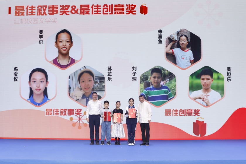 为响应中宣部“新大众文艺”创作导向,本届奖项特别增设“新大众文艺奖”,由横岗胡杨林透友、医务人员与志愿者共同创作的诗集《我的余生》斩获第一名,东莞作家王瑛、温雄珍及龙岗本地作家胡四民、张淑琴等也一同获奖,彰显大众创作的鲜活生命力。面向全市学生的“校园文学奖”同样亮点十足,深圳市鹏兴学校学生吴芋尔凭借优秀作品获“最佳叙事奖”,这位全国自由式小轮车赛事冠军在领奖时动情表示:“手握‘红棉’奖项,仿佛看见燃烧的木棉花。奖牌会蒙尘,但心里的文学赛道永远鲜活,我会继续用笔书写青春。”