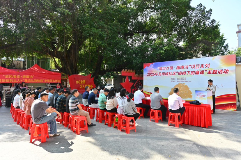 11月6日,龙岗墟社区举办“清风老街·趣廉洁”项目系列活动之“榕树下的廉课”暨“廉洁从我做起”承诺签名活动。本次活动在龙岗街道纪工委的指导下,由龙岗墟社区纪委牵头组织,旨在将廉洁文化与情绪管理相结合,引导党员干部职工和社区居民从“心”出发,筑牢廉洁自律思想防线。