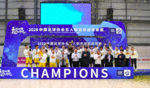 11月15日,在2025中国足球协会五人制足球超级联赛最后一轮的较量中,深圳南岭铁狼坐镇主场龙岗求水山体育中心,迎战杭州临平吴越钱唐。凭借着麦尔丹的梅开二度,以及王家豪、阿尔维斯、黄涛、顾海涛、凯赛尔的进球,深圳南岭铁狼以7:0的比分击败对手,用一场兵不血刃的胜利为赛季圆满收官,荣耀加冕第十一座联赛冠军奖杯。