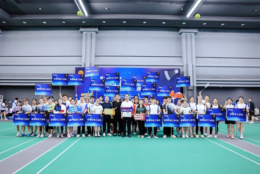 本次赛事旨在深化“星级工会联盟”品牌建设,搭建企业间联谊交流桥梁。来自辖区绿色低碳产业星级工会联盟6家企业及其他17家重点企业的23支队伍、236名职工羽球健将齐聚一堂,以球会友、切磋技艺。龙岗区总工会党组成员、副主席、二级调研员卢中荣,坪地街道党工委委员、组织委员、工会主席吴豫青,来到现场为赛事助力。