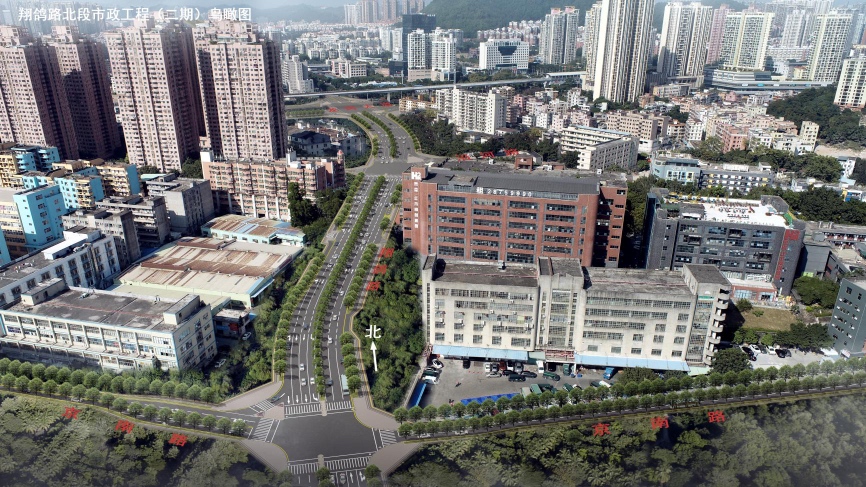 翔鸽路北段市政工程(二期)实施效果图。