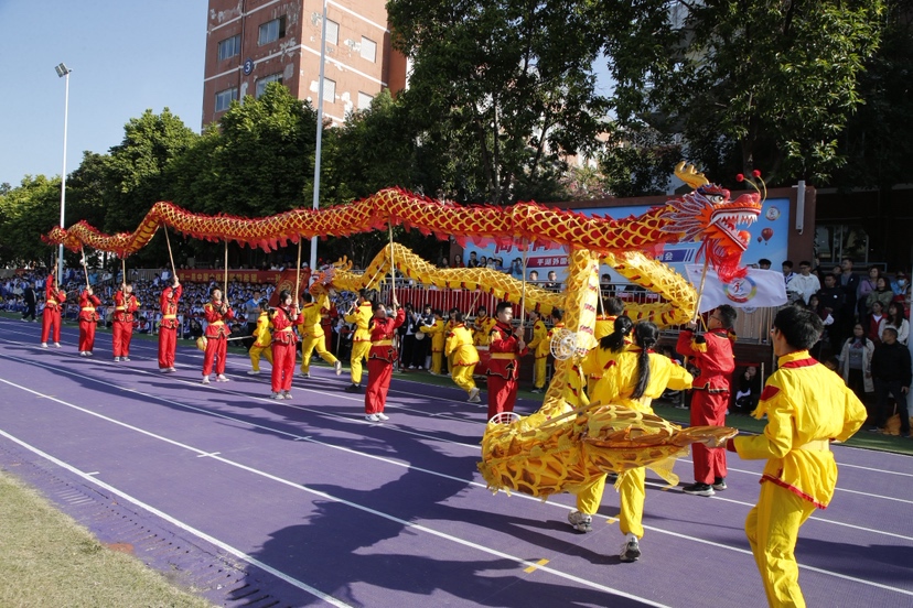 开幕式上,各方阵展演精彩纷呈、意气风发。国旗队迈着庄严步伐引领全场,校旗队、彩旗队紧随其后,气势昂扬。各年级代表队创意十足,学子们身着特色服饰、喊着激昂口号,迈着矫健步伐依次通过主席台。其中,由32名学子组成的“平外龙队”献上精彩的双龙起舞表演,将民族团结与体育精神深度融合,充分展现出平外学子的青春朝气与蓬勃活力。