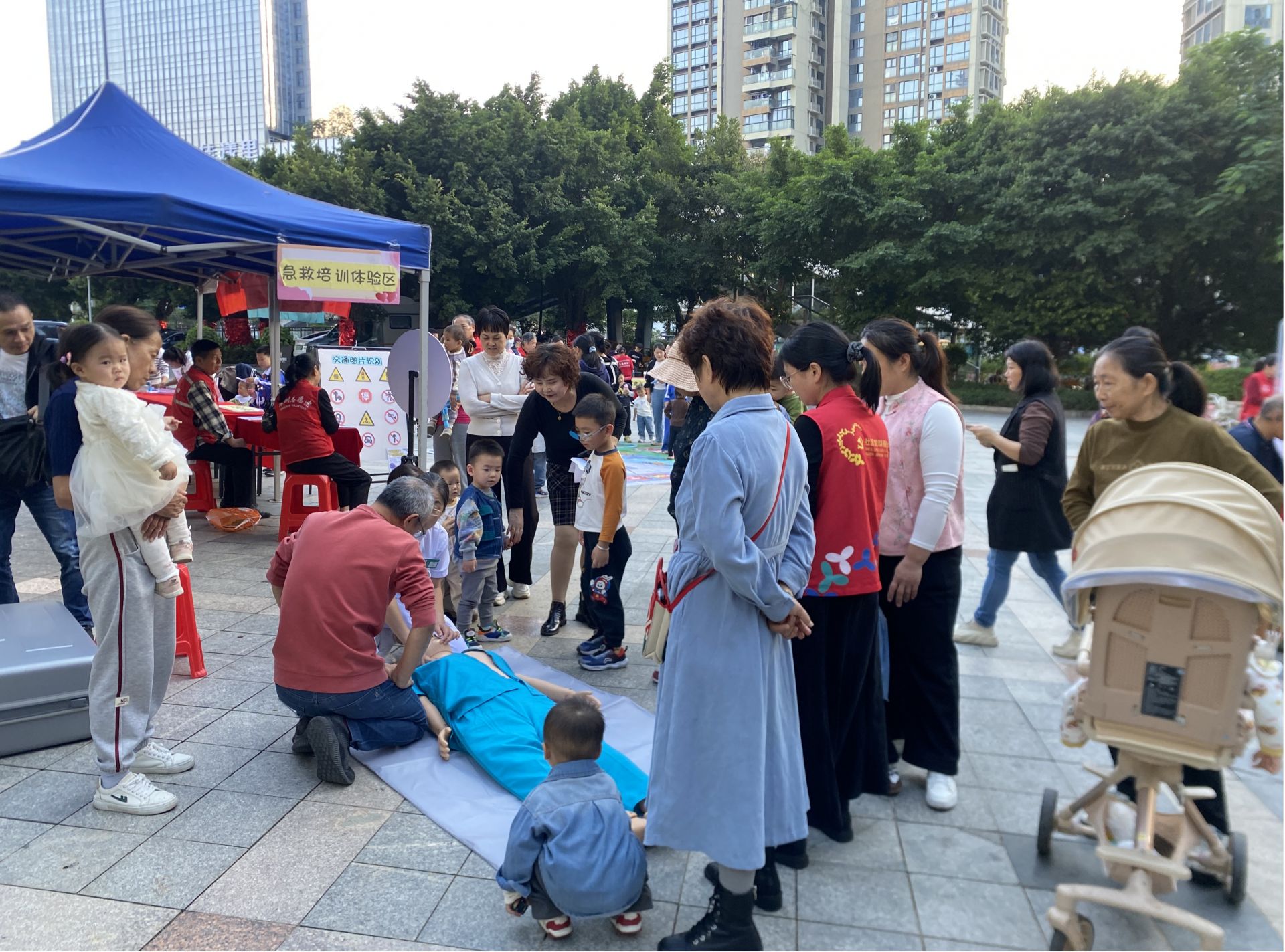 现场设置有心理健康宣传、义诊、急救体验等便民服务摊位。口腔义诊摊位人气颇高,医生耐心诊查,针对问诊居民的龋齿、牙周炎等常见问题详细讲解、指导;为让居民在轻松氛围中强化交通出行安全意识,尤其是电动车骑行安全,现场设置了安全体验区;急救培训体验区,专业讲师模拟心脏骤停、气道异物梗阻等突发场景,将急救知识转化为直观操作,详细讲解心肺复苏要点,从按压频率、深度到呼吸方法,居民分组实操、认真练习;在消防安全体验摊位,工作人员实操演示灭火器、消防水带的使用方法,讲解不同火灾应对策略和灭火器的选择。