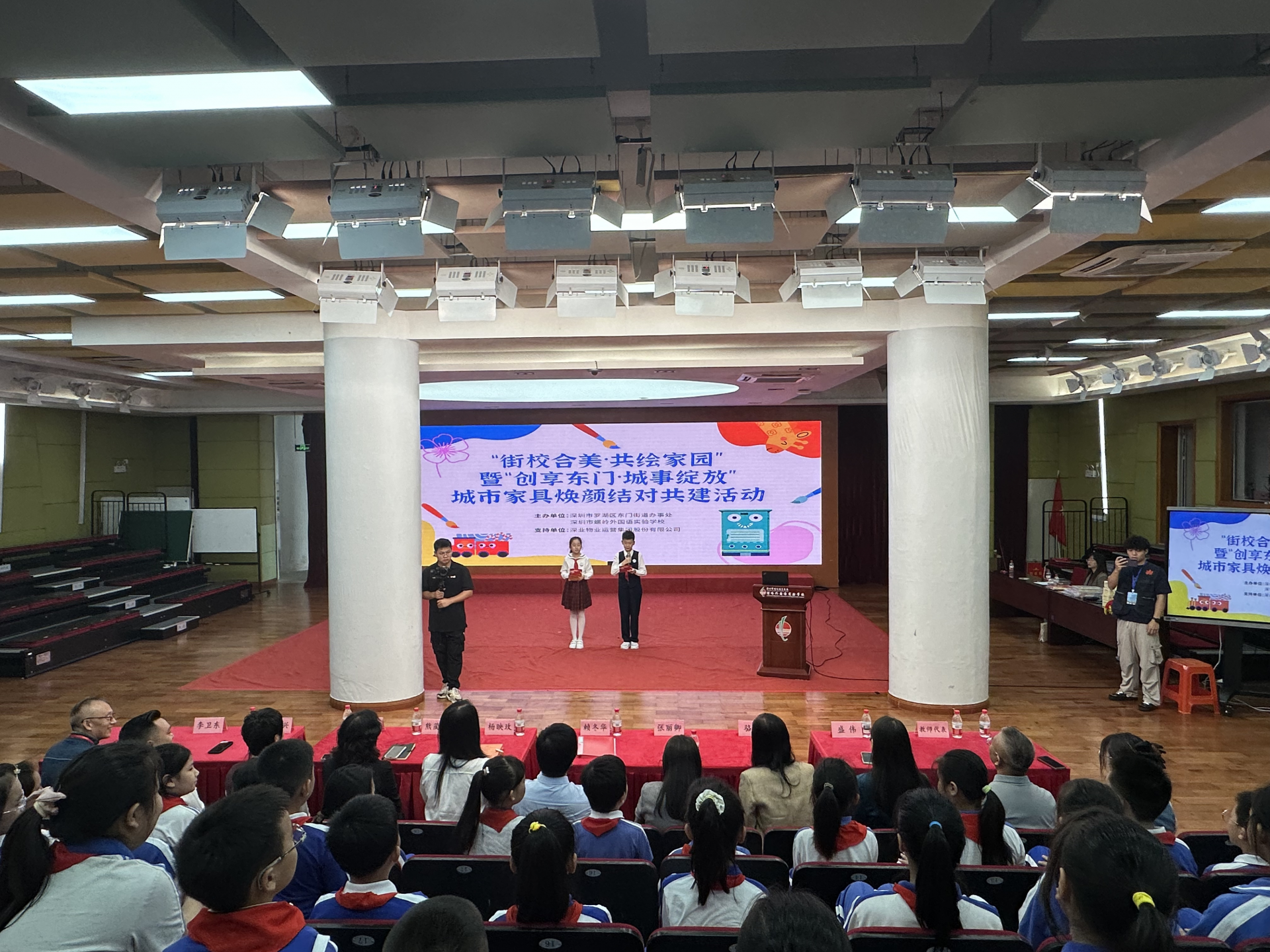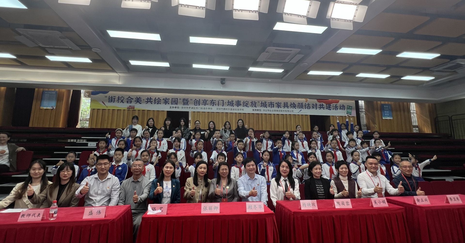 11月14日,罗湖区东门街道与螺岭外国语实验学校举行“街校合美・共绘家园” 暨 “创享东门・城事绽放” 活动成果展示及表彰大会,街道代表、罗湖区人大代表和学校师生共同见证了城市家具焕颜结对共建的丰硕成果。