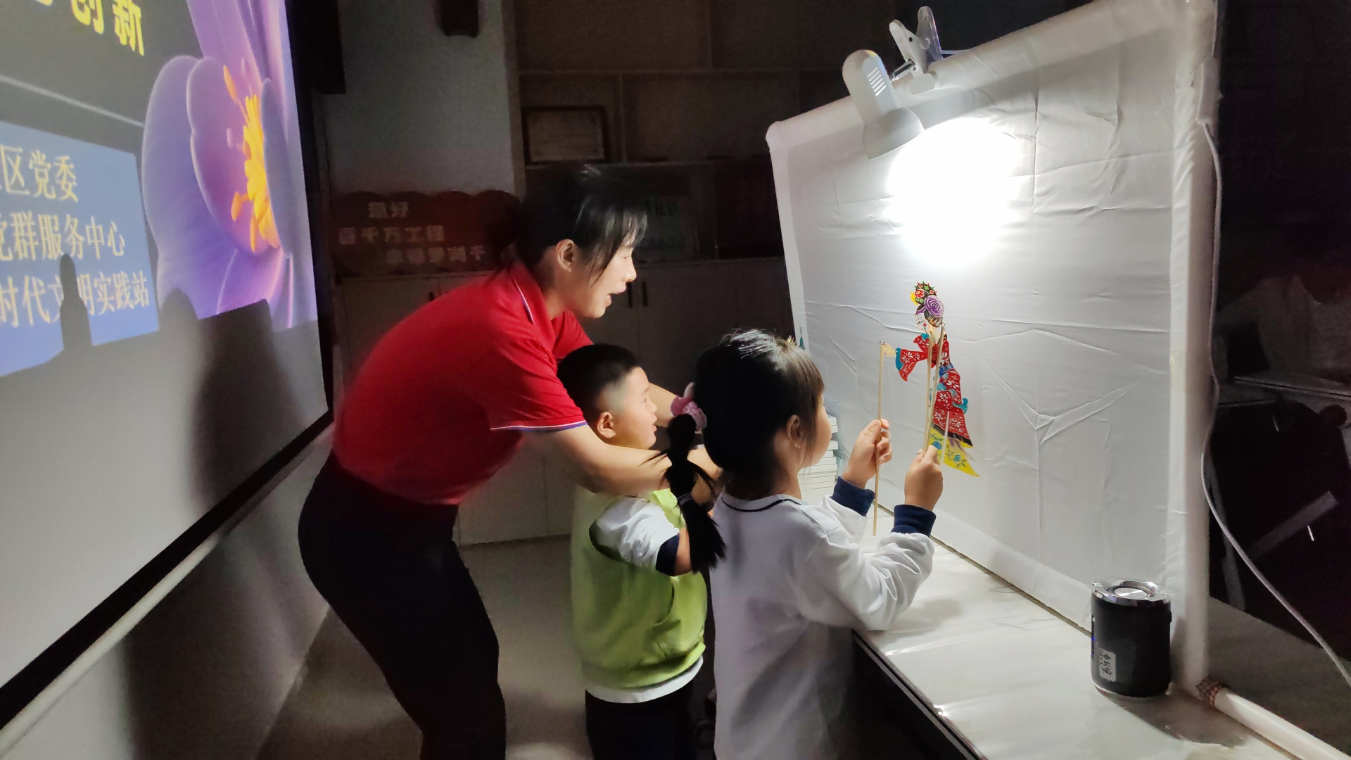 11月13日,罗湖区桂园街道人民桥社区党群服务中心联合金瓜豆托育机构举办“光影传奇,皮影非遗” 少儿科普活动,以非遗传承与科学启蒙为核心,吸引12组亲子家庭踊跃参与。