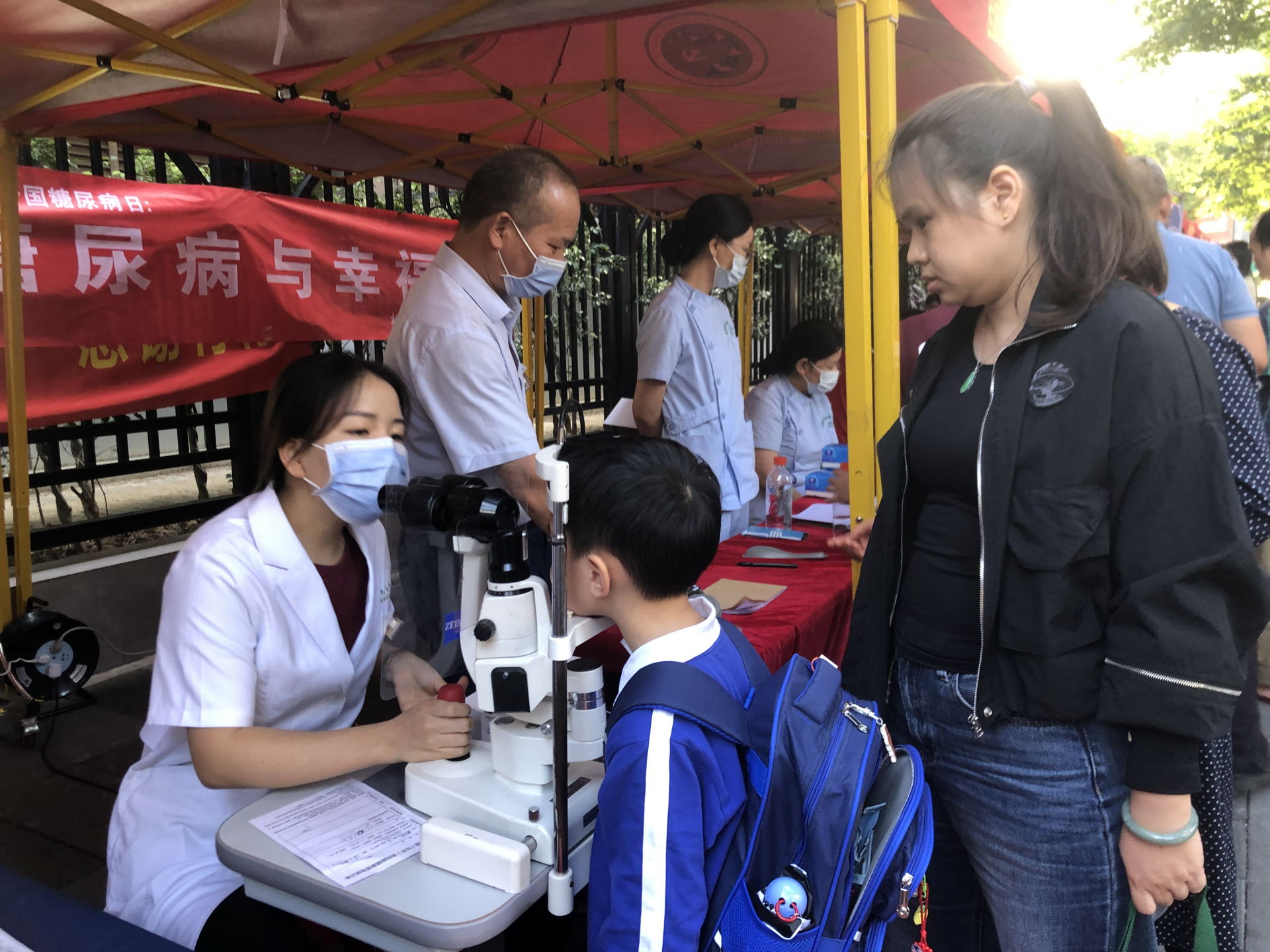 活动现场设置多个便民服务摊位。在健康服务区,松园社康中心医护人员为居民提供血压、血糖检测等基础检查,眼科医生携带专业设备开展视力筛查,口腔科医生现场演示正确刷牙方法并解答护牙问题。科技体验区吸引众多亲子家庭驻足,少科城带来的机器人对弈项目让儿童在互动中感受人工智能魅力。
