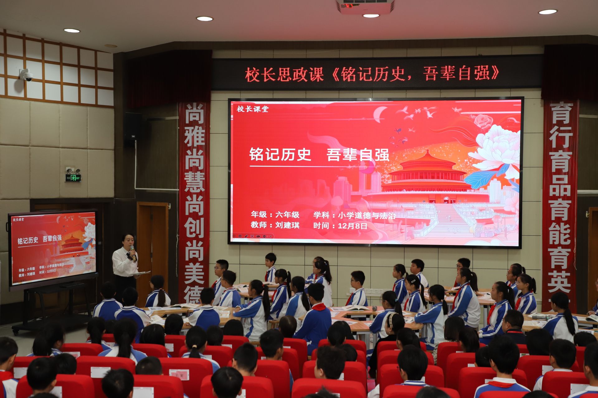 启动仪式后,爱国主义学习周系列活动正式展开,首堂思政课以“铭记历史 吾辈自强”为主题,由大望学校党支部书记、校长刘建琪主讲。刘建琪通过播放抗战影片、回顾抗日战争核心事件及“纪念抗日战争暨世界反法西斯战争胜利80周年阅兵式”,带领学生重温民族奋斗历程,引导学生深刻理解和平生活的来之不易,科技自强的使命担当,让爱国情怀在课堂浸润中扎根心田。
