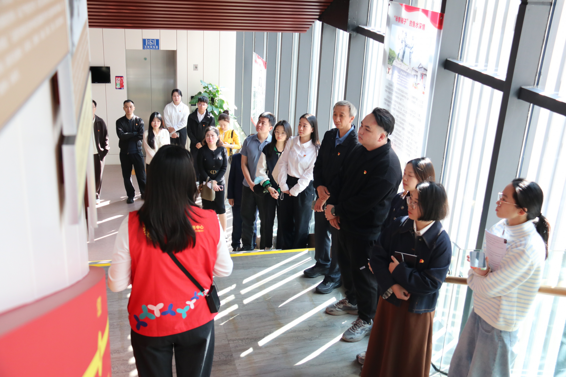 宣誓仪式前,新党员们在讲解员引导下,沉浸式参观了市党群服务中心党史党建展馆。丰富的展陈内容生动呈现了百年发展历程中的奋斗足迹与辉煌成就,参与者们循着历史脉络,深切感悟一代代建设者为家国发展不懈拼搏的信念与情怀。在深圳发展相关展区,大家系统了解了特区发展进程中创下的亮眼成绩,深刻体会 “敢闯敢试、敢为人先、埋头苦干” 的实干精神。参观过程中,大家不时驻足交流、分享感悟,在历史与现实的交融中深化对时代发展的理解与思考。
