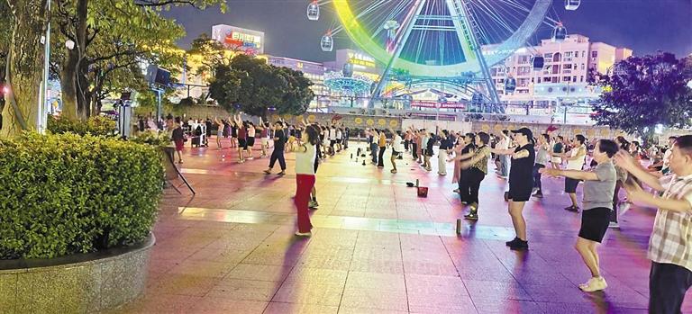 ▲7组定向音响在大浪劳动者广场“上岗”后,不仅噪声投诉归零,加入广场舞队伍的居民也越来越多了。