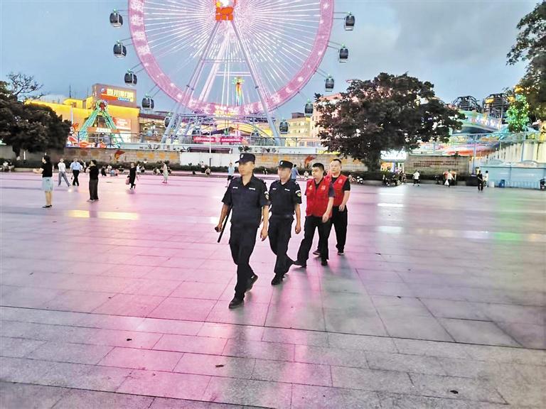▲同胜警区、广场物业安保人员、退休党员、志愿者等自发组成广场“静音巡逻队”。