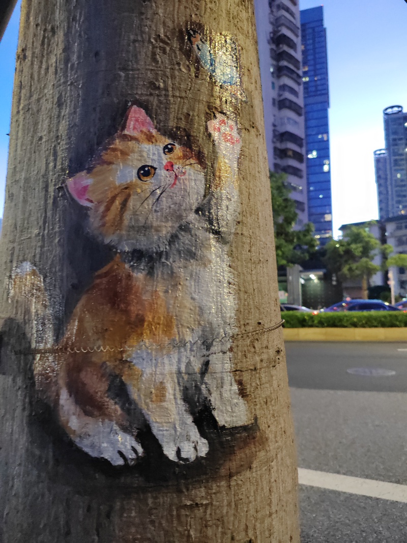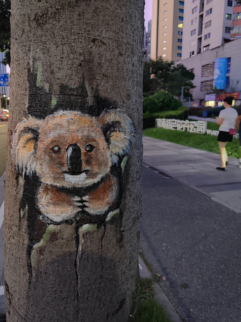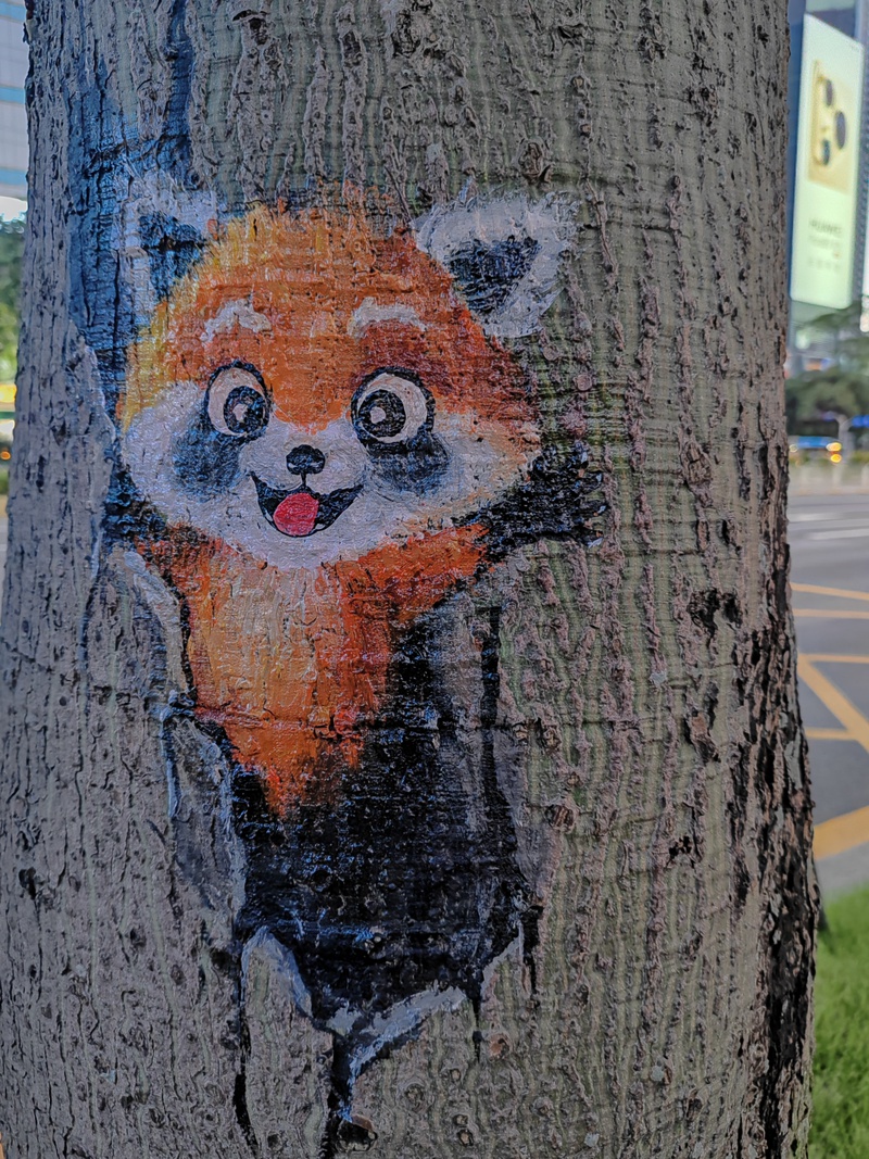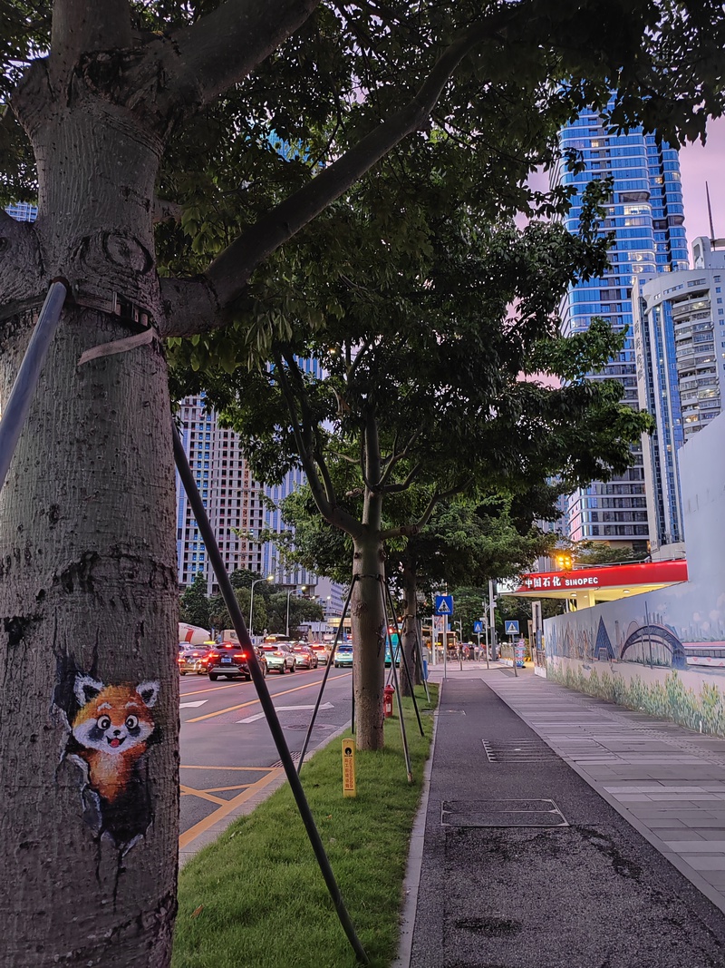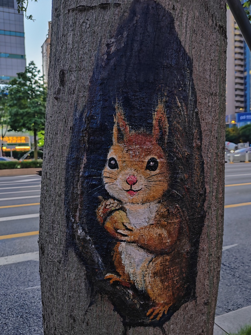据悉,这是罗湖区城市管理和综合执法局特邀专业画师,在街头开展树画创作,给城市公共空间注入新活力,树画所使用的丙烯颜料不仅无害树木,还能起到一定的遮盖、防护和防虫作用。