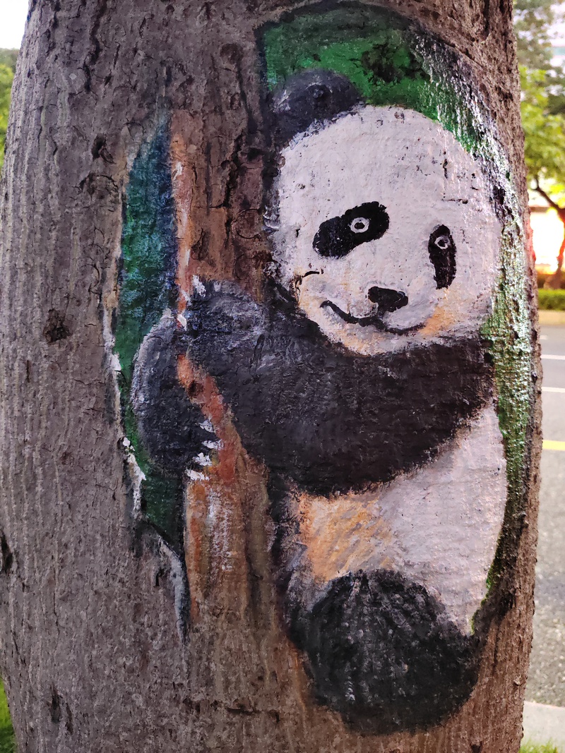 路过的人都忍不住驻足观看,咔嚓一张。这些生动活泼、栩栩如生的小可爱正是出自树画师王瑶的艺术创作。“我一般根据树的形状或树疤的位置,创作出可爱的小动物形象,让路过的人感受到生活中的小惊喜。”