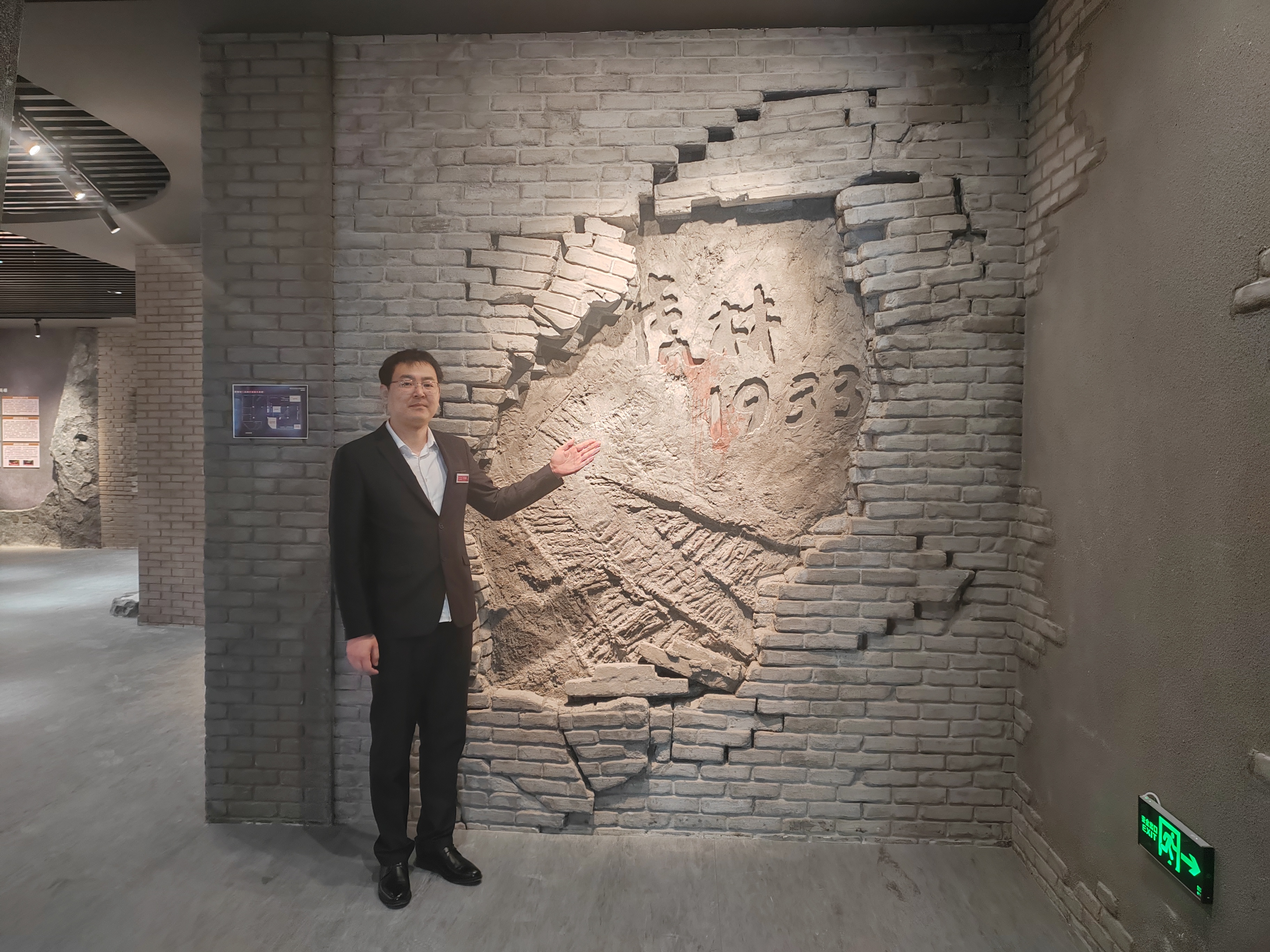 在博物馆一楼,笔者遇到了讲解员李本乐。他戴着金丝眼镜,身着黑色西装,温文尔雅的面容中透着几分炽热,更添了几分庄重。他的目光缓缓停驻在“虎林1933”的残墙上,指尖触摸砖石裂痕的瞬间,仿佛能感受到刺骨的寒意。