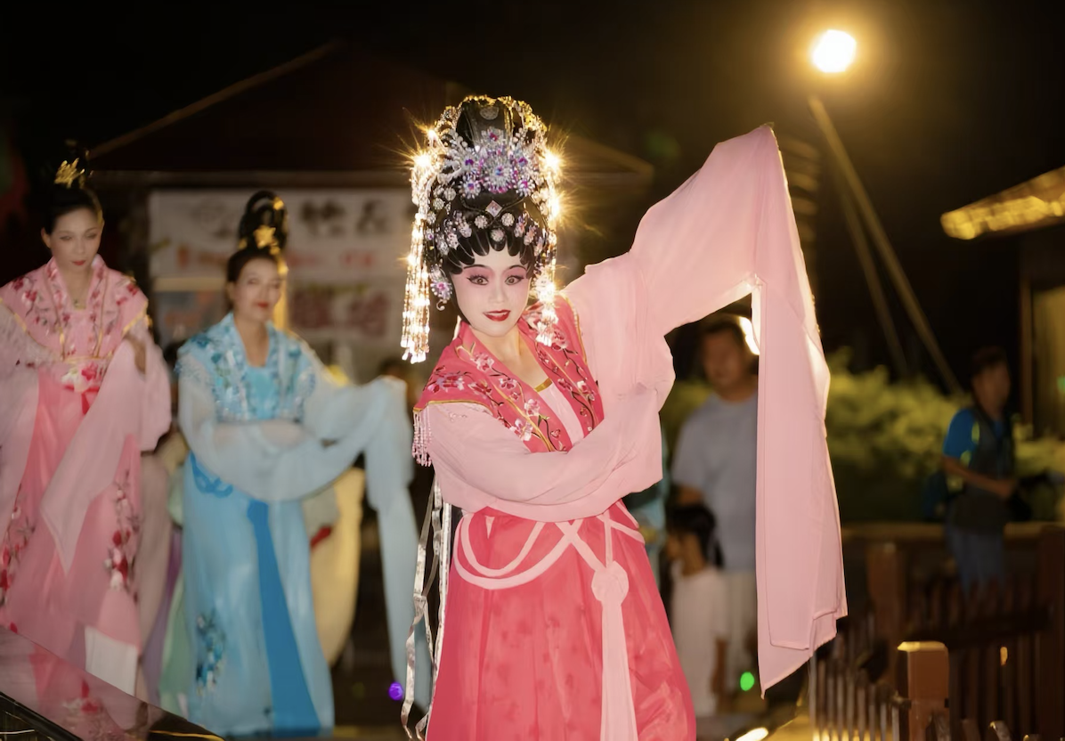 “天上有鹊桥,人间有粤韵”。当晚的红木古镇,星河闪烁,粤韵缭绕,粤剧非遗与红木古镇的这一次浪漫邂逅,不仅打造了独具岭南风情的七夕记忆,也推动了非遗传承与当代城市生活相融合的探索。接下来,公明街道将继续深化推动文旅融合高质量发展,让传统艺术成为激活城市文化记忆、赋能当代生活美学的重要力量。