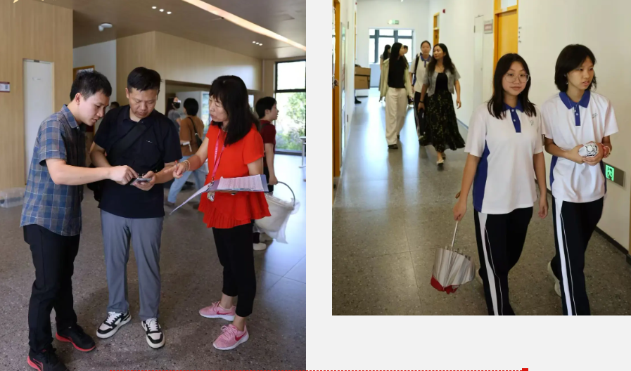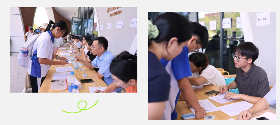 来自深圳龙岗的高二学生唐菲和邓可盈一大早就坐高铁来学校参加迎新志愿活动。