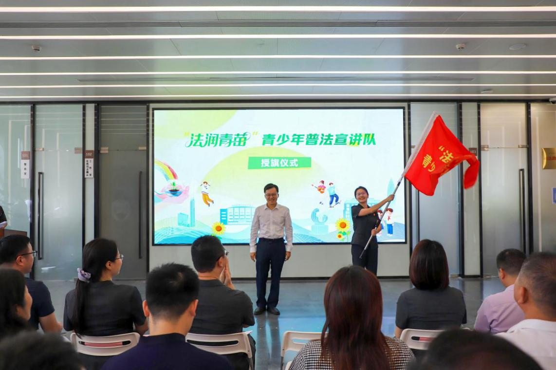 随后,李卓文为深汕法院“青少年普法宣讲队”授旗。这支由法官詹婉秋担任队长,由4名法官和4名法官助理组成的宣讲队,将定期开展普法宣讲、法律咨询、以案说法、模拟法庭指导等活动,让法治的种子在青少年心中生根发芽,为他们的成长之路点亮法治明灯。