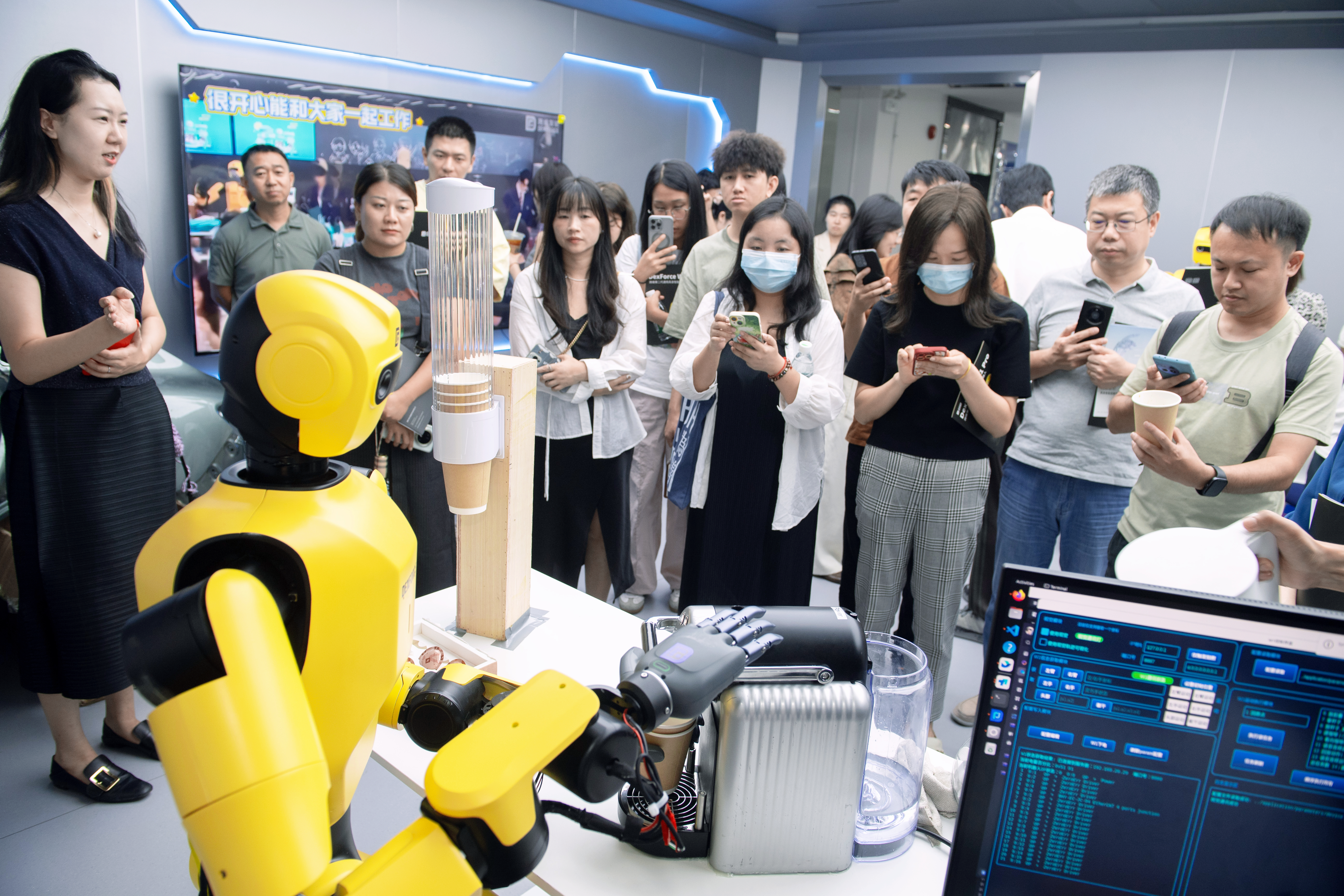 在跨维智能,曾登陆爱奇艺综艺《微笑一号店》的咖啡机器人成“人气担当”。当记者提出“帮我冲一杯咖啡”,它即刻回应并启动咖啡胶囊机,制作美式咖啡时,还不忘科普咖啡小知识;其灵巧手具备精准抓取功能,既可以“抓娃娃”,也能抓取药盒。跨维智能相关负责人直言:“有需求可以产品级交付,希望帮商圈降本增效。”