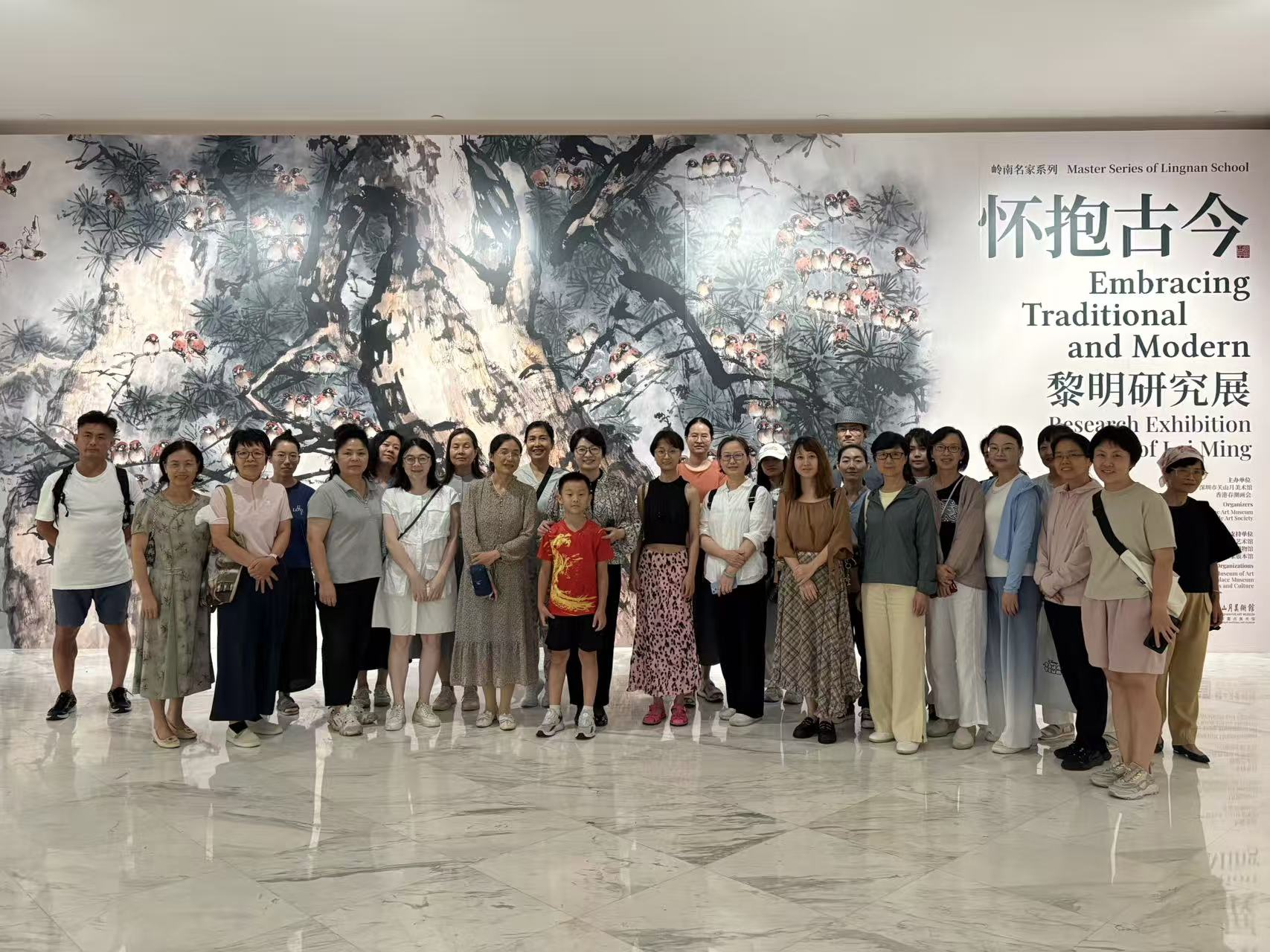 活动以展览六大板块——“新宋院画”“师法自然”“折衷中外”“浑厚华滋”“濠江画迹”“自出机枢”为主线,陈旭霞以黎明与恩师高剑父的师承关系为切入点,结合中国画技法演变与中外艺术思潮交融的历史脉络,逐一解读展品背后的艺术密码。她特别指出:“黎明先生不仅是高剑父‘折衷中外’理念的继承者,更在实践中将宋院体工笔、日本画技法与中国水墨意境熔铸一体,开创了独特的艺术语言。”