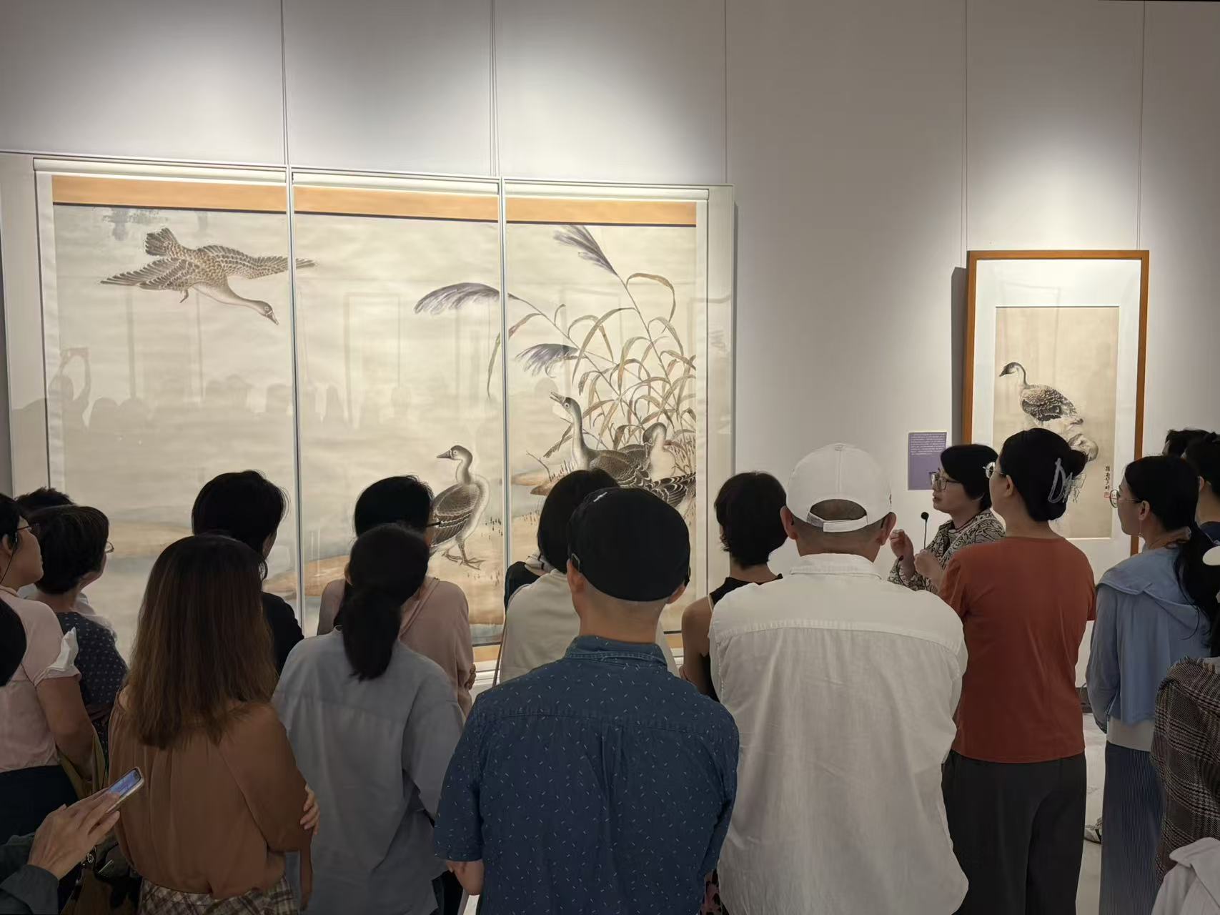 导览现场,有艺术爱好者表示:“以前只在教科书里读过关于岭南画派的风格描绘,今天通过黎明的作品,对岭南画派的技法风格有了直观的感受。”更有观众感慨:“七夕赏《孔雀》,既有传统文化的浪漫,又有艺术创新的震撼,这样的活动让节日更有意义。”
